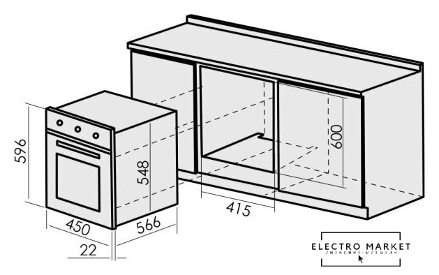 электрический с конвекцией, объем 60 л, 8 режимов, очистка ручная, проволочные направляющие, телескопические направляющие, энергопотребление A