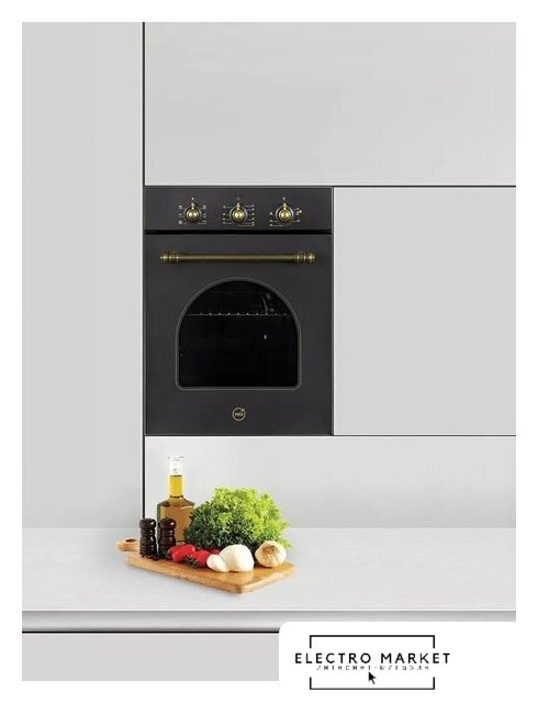 электрический с конвекцией, объем 69 л, 7 режимов, очистка каталитическая + паровая, 3 стекла в дверце, направляющие проволочные + телескопические (1 уровень)