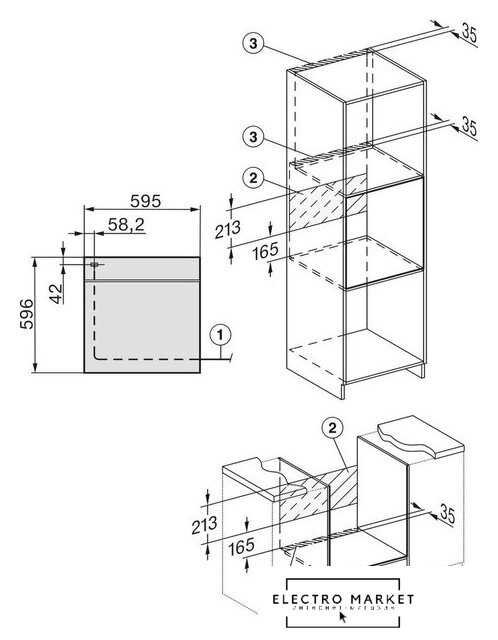 электрический с конвекцией, объем 71 л, 14 режимов, очистка пиролитическая, 4 стекла в дверце, направляющие проволочные, термощуп