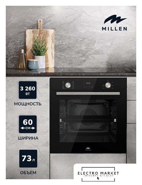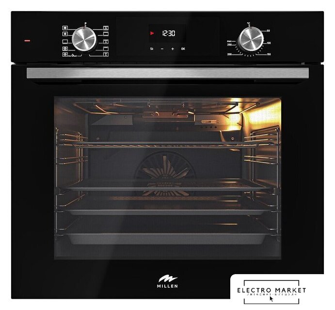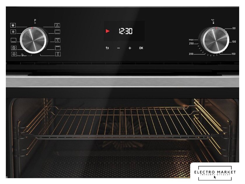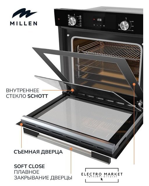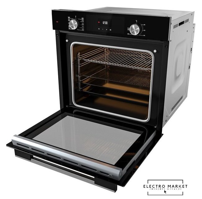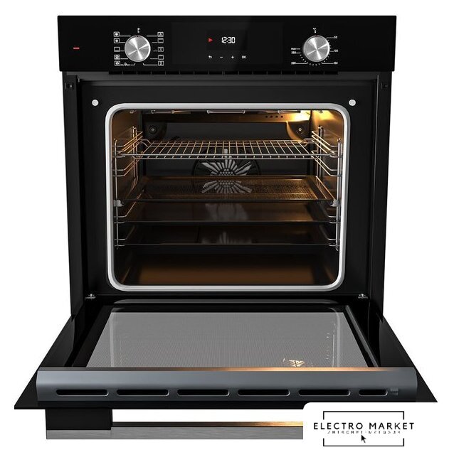 электрический с конвекцией, объем 70 л, утапливаемые переключатели, 7 режимов, очистка паровая, 2 стекла в дверце, направляющие проволочные
