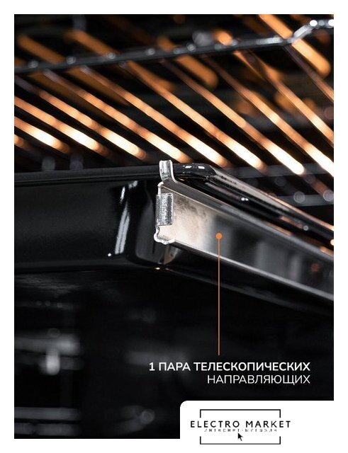 электрический с конвекцией, объем 70 л, 8 режимов, очистка ручная, проволочные направляющие, телескопические направляющие, энергопотребление A
