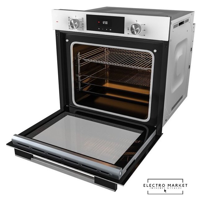 электрический с конвекцией, объем 80 л, утапливаемые переключатели, 7 режимов, очистка паровая, 3 стекла в дверце, направляющие проволочные + телескопические (1 уровень)