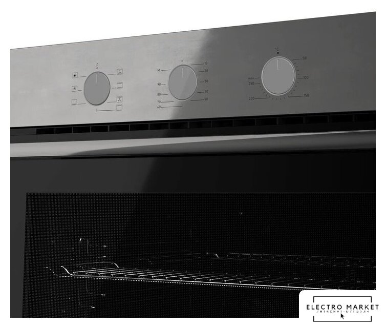 электрический с конвекцией, объем 60 л, утапливаемые переключатели, 8 режимов, очистка ручная, направляющие проволочные