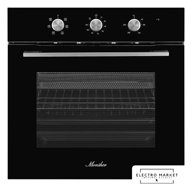 электрический с конвекцией, объем 65 л, утапливаемые переключатели, 8 режимов, очистка ручная, 2 стекла в дверце, направляющие проволочные