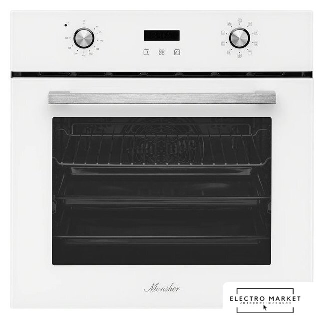 электрический с конвекцией, объем 52 л, утапливаемые переключатели, 7 режимов, очистка паровая, 2 стекла в дверце, направляющие проволочные