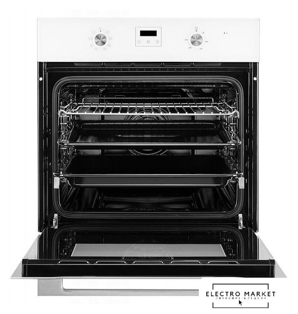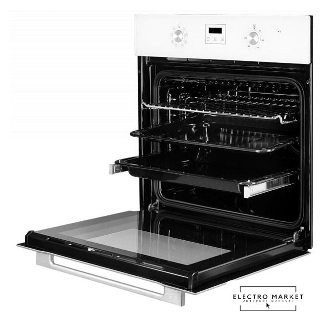 электрический с конвекцией, объем 60 л, 6 режимов, очистка паровая, 3 стекла в дверце, направляющие проволочные + телескопические (1 уровень)