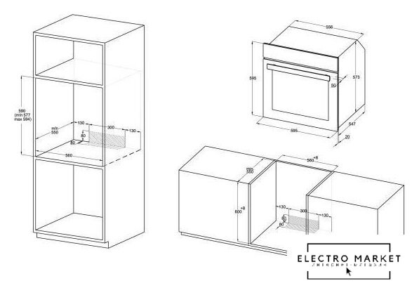 электрический с конвекцией, объем 76 л, 7 режимов, автопрограммы, очистка паровая, 2 стекла в дверце, направляющие проволочные