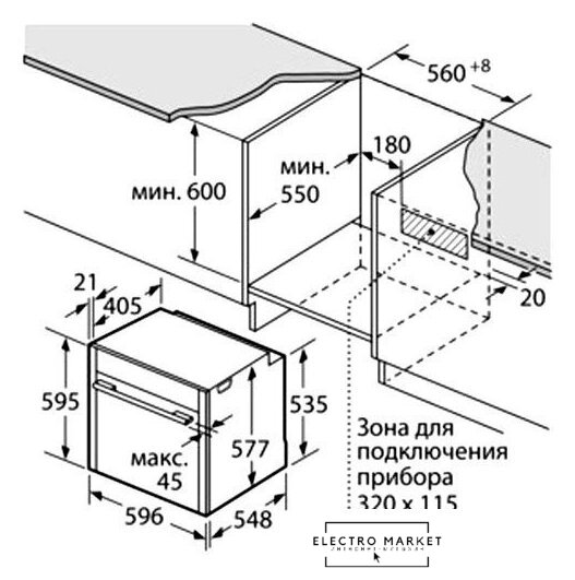 электрический, приготовление на пару, объем 47 л, 21 режим, очистка каталитическая + паровая, 3 стекла в дверце, направляющие проволочные