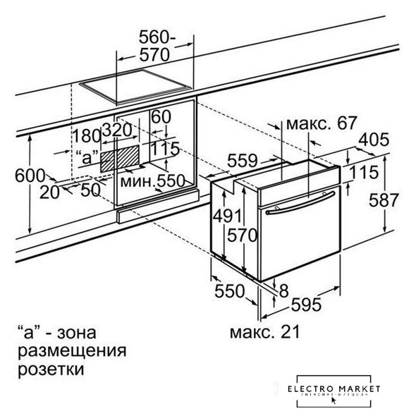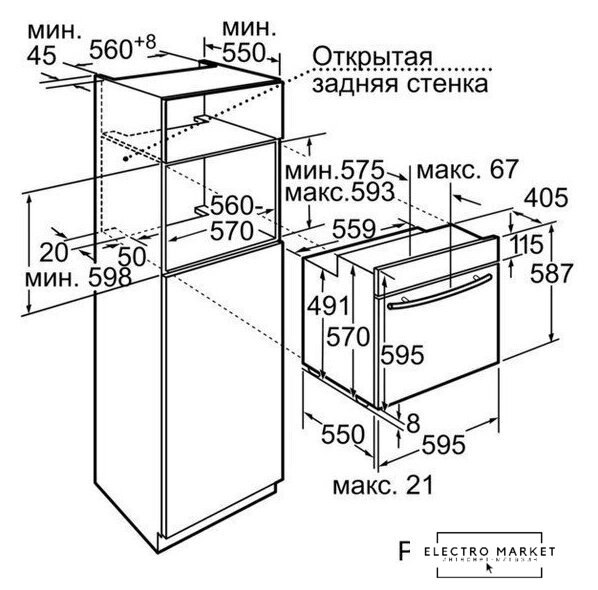 электрический с конвекцией, утапливаемые переключатели, 6 режимов, очистка ручная, направляющие проволочные