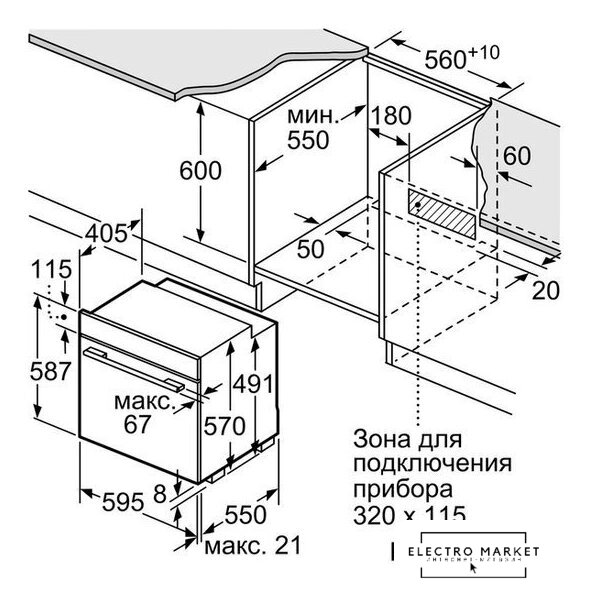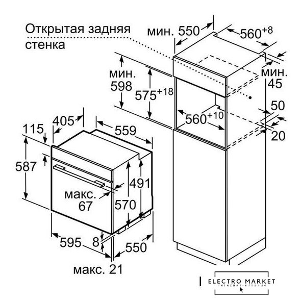 электрический с конвекцией, утапливаемые переключатели, 6 режимов, очистка ручная, направляющие проволочные + телескопические (1 уровень)