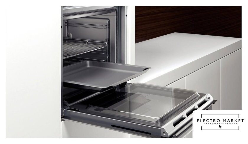 электрический с конвекцией, приготовление на пару, утапливаемые переключатели, 12 режимов, очистка ручная, 3 стекла в дверце, направляющие проволочные + телескопические