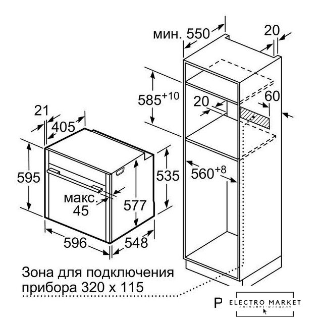 электрический с конвекцией, объем 71 л, 12 режимов, очистка пиролитическая, направляющие проволочные