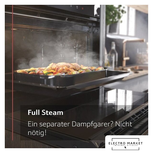 электрический с конвекцией, приготовление на пару, объем 76 л, без ручки, 17 режимов, автопрограммы, очистка пиролитическая, 4 стекла в дверце, направляющие проволочные + телескопические (1 уровень)