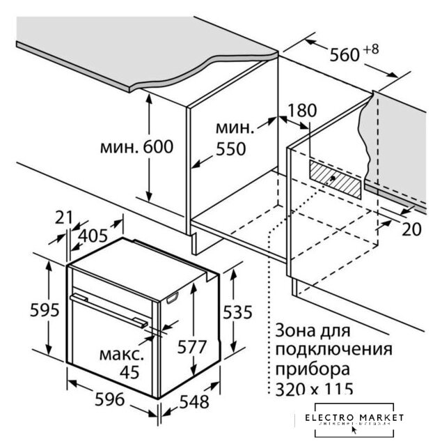 электрический с конвекцией, объем 71 л, 9 режимов, очистка ручная, направляющие проволочные + телескопические