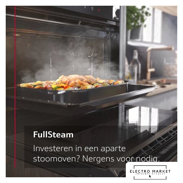 электрический с конвекцией, приготовление на пару, объем 71 л, 16 режимов, очистка каталитическая + пиролитическая, 4 стекла в дверце, направляющие проволочные + телескопические (1 уровень), термощуп