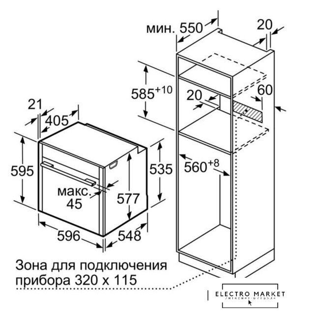 электрический с конвекцией, микроволны, объем 45 л, 12 режимов, автопрограммы, очистка каталитическая, 3 стекла в дверце, направляющие проволочные