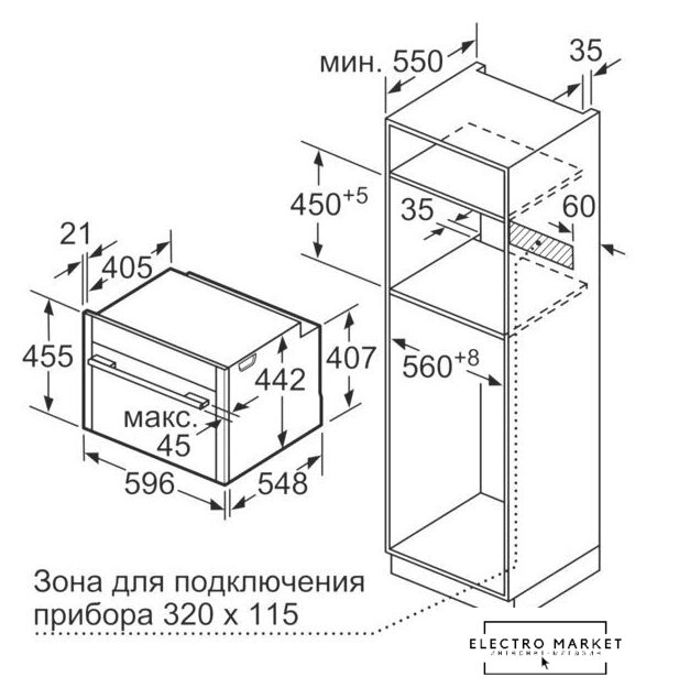 электрический с конвекцией, приготовление на пару, объем 71 л, 13 режимов, автопрограммы, очистка каталитическая, направляющие проволочные, термощуп