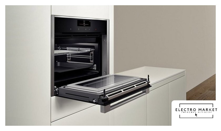 электрический, приготовление на пару, объем 50 л, утапливаемые переключатели, 12 режимов, очистка ручная, 2 стекла в дверце, направляющие проволочные