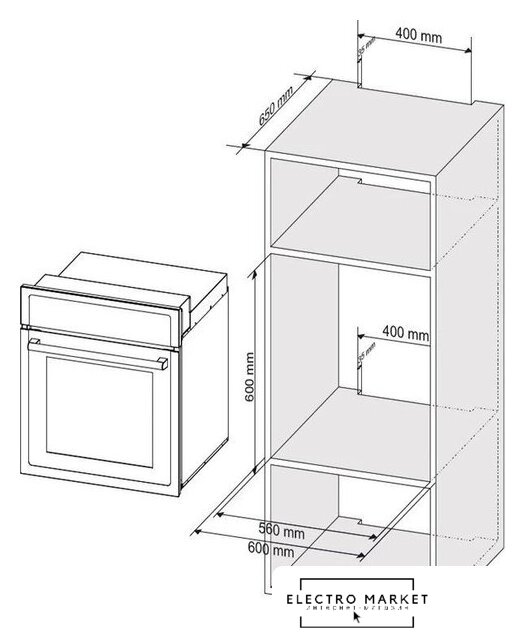 электрический статический, объем 49 л, 3 режима, очистка паровая, 2 стекла в дверце, направляющие проволочные