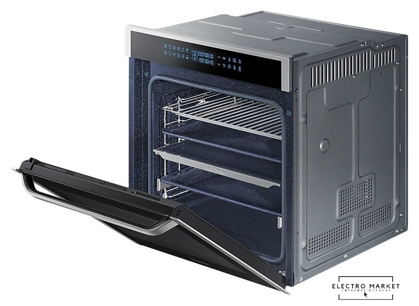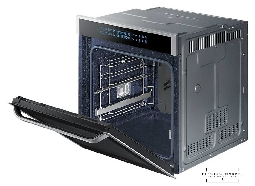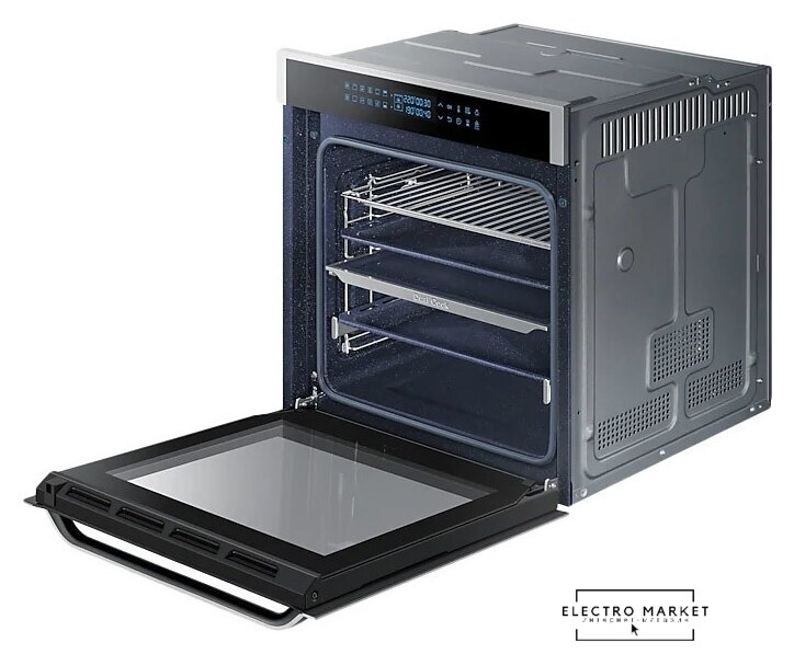 электрический с конвекцией, объем 76 л, 13 режимов, автопрограммы, очистка каталитическая + паровая, 2 стекла в дверце, направляющие проволочные + телескопические (1 уровень)