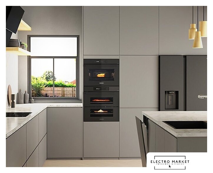 электрический с конвекцией, микроволны, объем 43 л, 23 режима, автопрограммы, очистка ручная, 3 стекла в дверце, направляющие проволочные