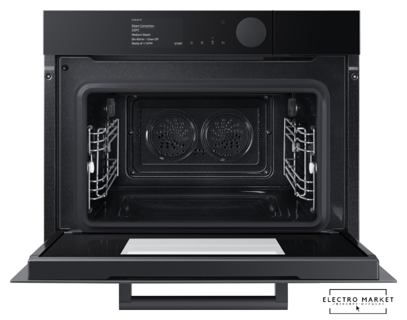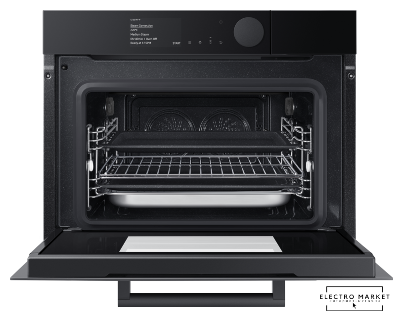 электрический с конвекцией, приготовление на пару, объем 76 л, 12 режимов, автопрограммы, очистка каталитическая + паровая, 2 стекла в дверце, направляющие проволочные + телескопические (2 уровня)