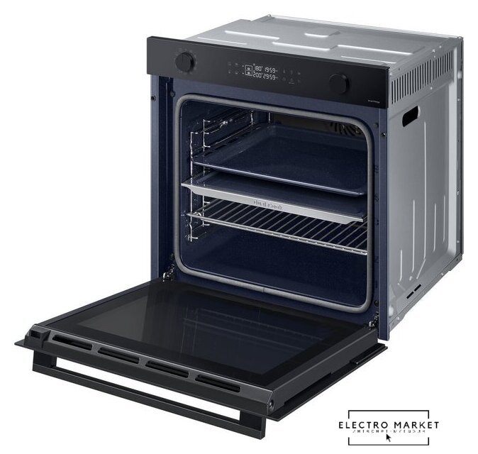 электрический с конвекцией, объем 76 л, 13 режимов, автопрограммы, очистка каталитическая + паровая, 2 стекла в дверце, направляющие проволочные + телескопические (1 уровень)