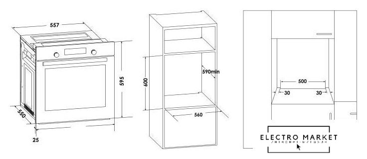 электрический с конвекцией, объем 55 л, 6 режимов, очистка ручная, проволочные направляющие, энергопотребление A