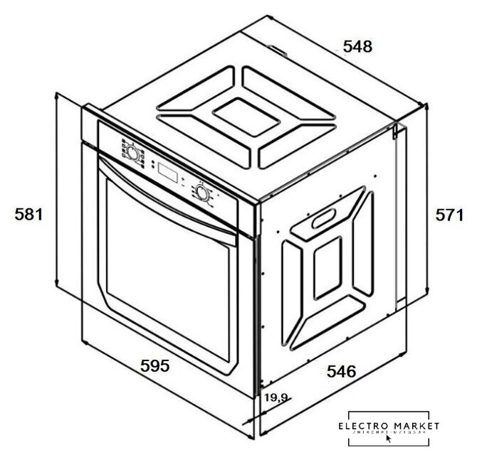 электрический с конвекцией, объем 55 л, утапливаемые переключатели, 14 режимов, очистка ручная, направляющие рельефные