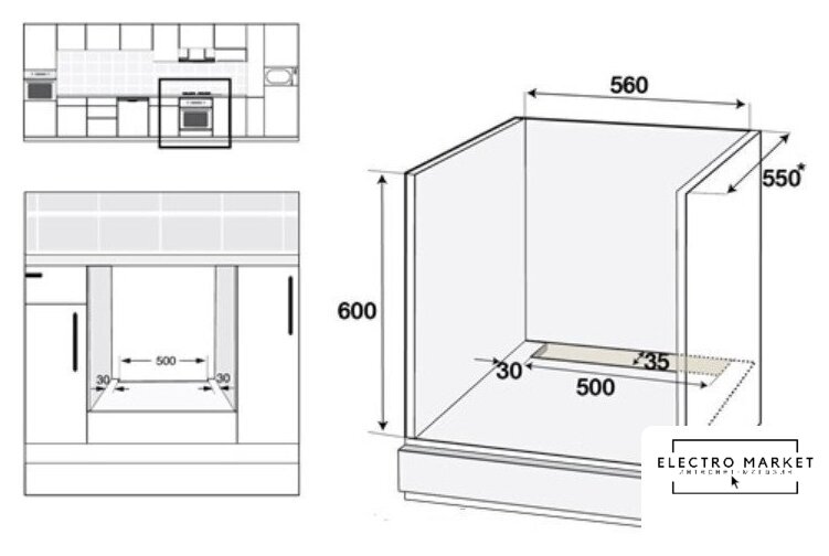 электрический с конвекцией, объем 66 л, 9 режимов, очистка паровая, 2 стекла в дверце, направляющие проволочные