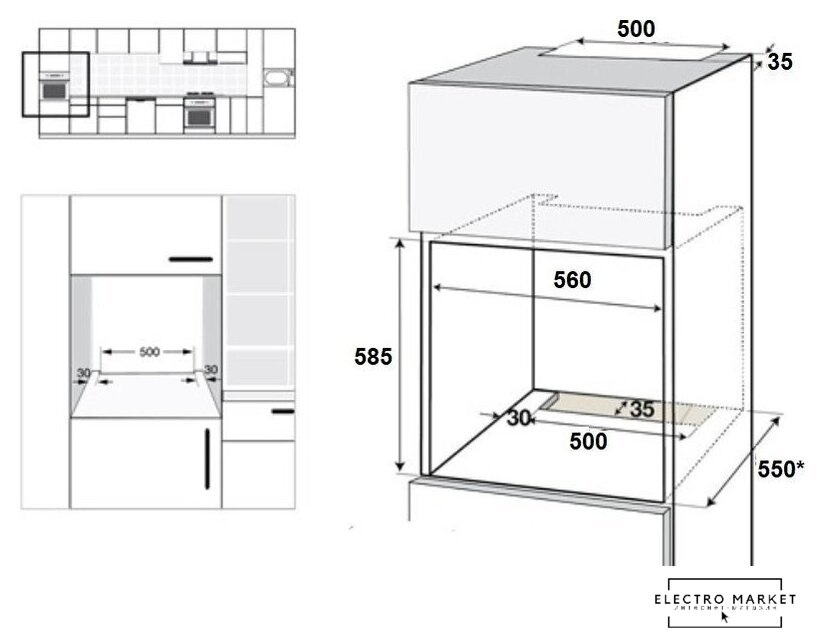 электрический с конвекцией, объем 72 л, утапливаемые переключатели, 9 режимов, очистка паровая, 3 стекла в дверце, направляющие проволочные + телескопические (1 уровень)