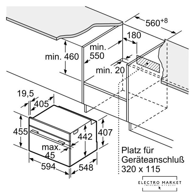 электрический с конвекцией, приготовление на пару, объем 72 л, автопрограммы, очистка пиролитическая, 3 стекла в дверце, направляющие проволочные + телескопические (1 уровень), термощуп