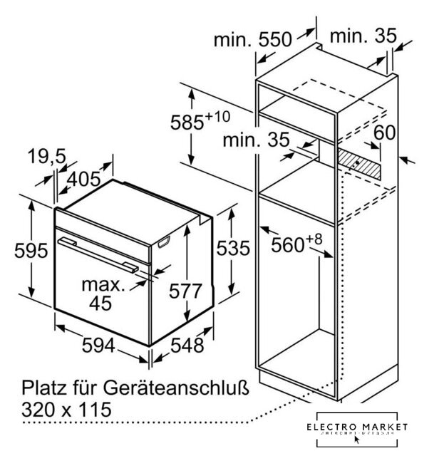 электрический с конвекцией, объем 71 л, 13 режимов, очистка пиролитическая + паровая, направляющие проволочные, термощуп