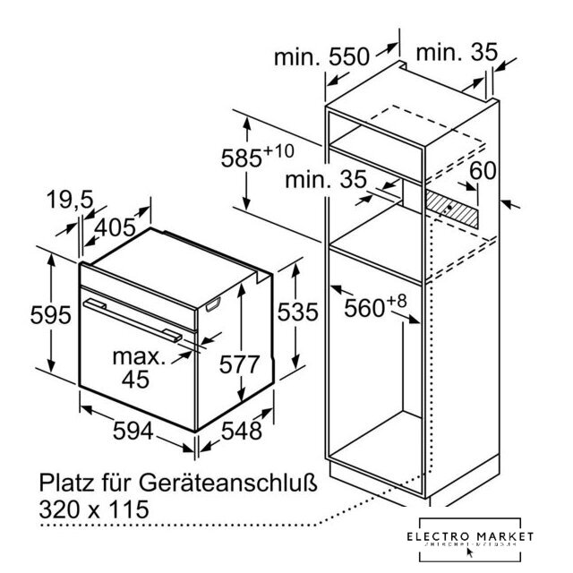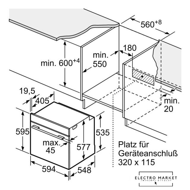электрический с конвекцией, микроволны, объем 68 л, 20 режимов, очистка паровая, 4 стекла в дверце, направляющие проволочные + телескопические (1 уровень)