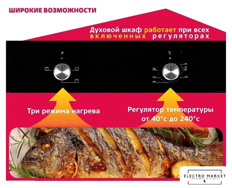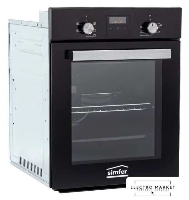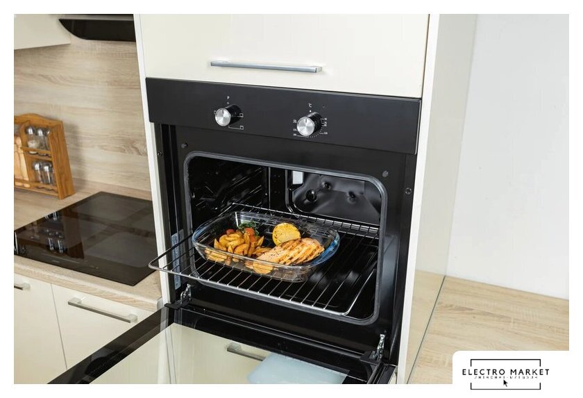 электрический с конвекцией, объем 53 л, утапливаемые переключатели, 6 режимов, очистка паровая, направляющие проволочные + телескопические (1 уровень)
