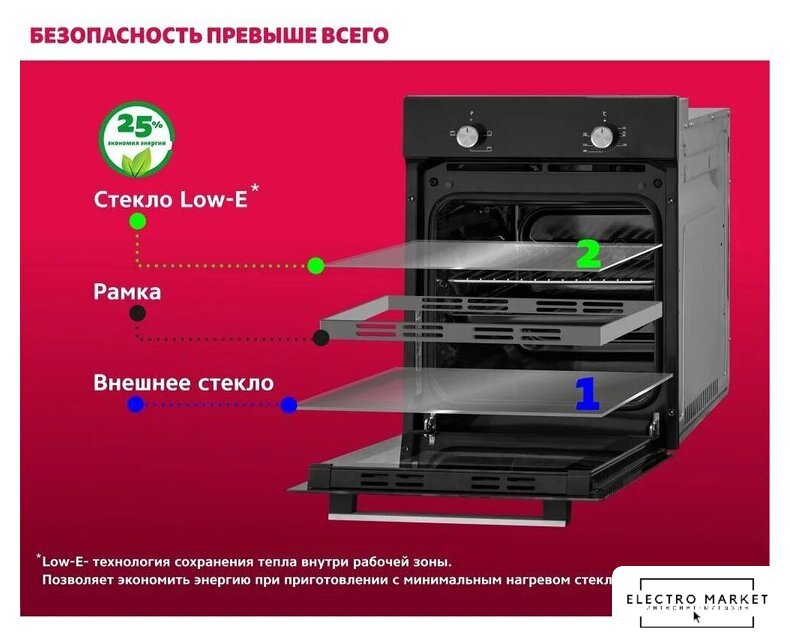| Количество стекол дверцы духовки | 2 |