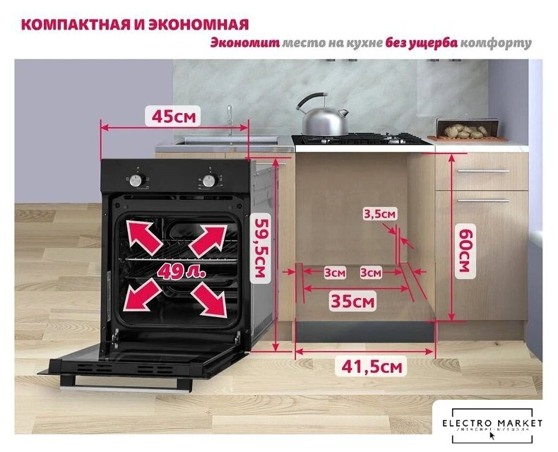 | Объём духового шкафа | 49 л |