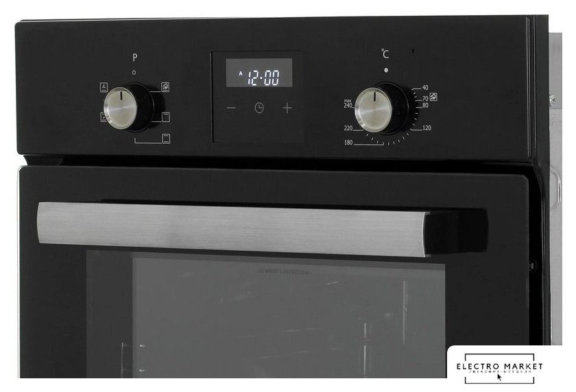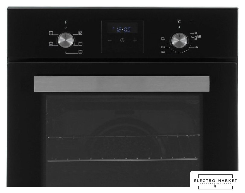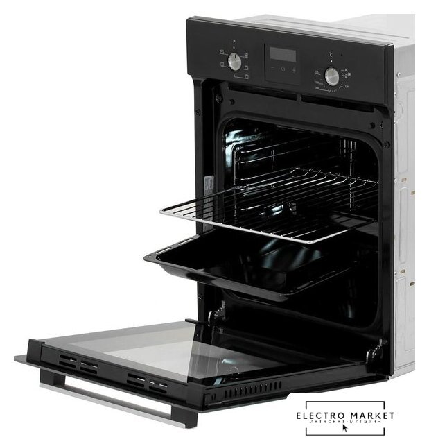 электрический с конвекцией, объем 78 л, утапливаемые переключатели, 7 режимов, очистка ручная, 2 стекла в дверце, направляющие проволочные