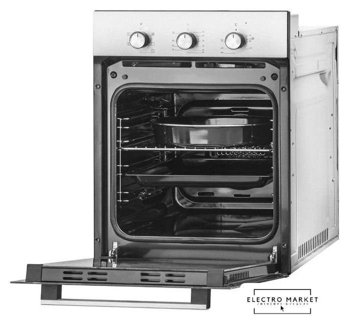 электрический с конвекцией, объем 53 л, утапливаемые переключатели, 6 режимов, очистка паровая, направляющие проволочные + телескопические (1 уровень)