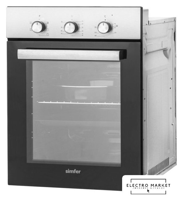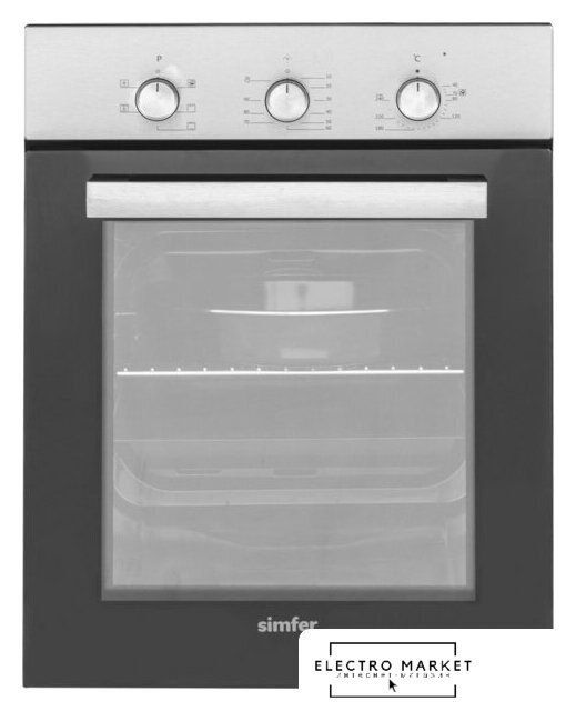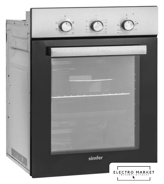 электрический с конвекцией, объем 78 л, утапливаемые переключатели, 7 режимов, очистка ручная, 2 стекла в дверце, направляющие проволочные