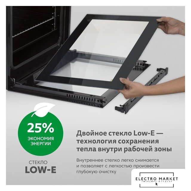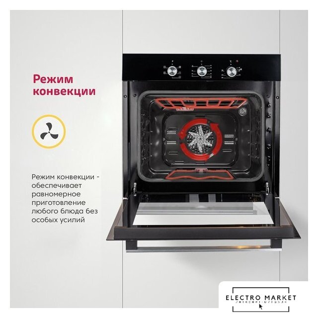 электрический с конвекцией, объем 65 л, 7 режимов, 2 стекла в дверце, направляющие проволочные