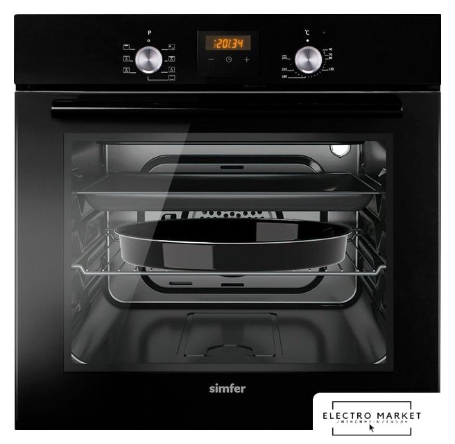 электрический с конвекцией, объем 60 л, 6 режимов, очистка ручная, проволочные направляющие, энергопотребление A