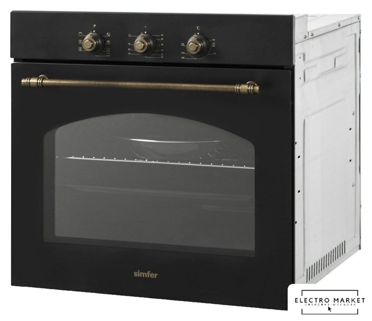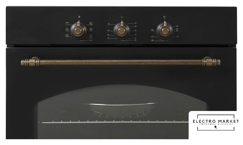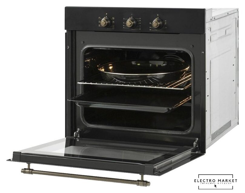 электрический с конвекцией, объем 58 л, 10 режимов, очистка ручная, 2 стекла в дверце, направляющие проволочные + телескопические (2 уровня)