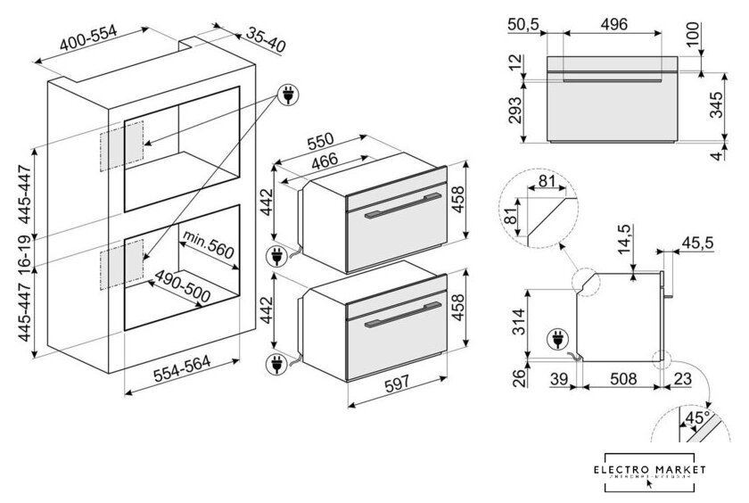 | Режимы работы | двухсторонний нагрев, большой гриль, вентиляционный нагрев, двухсторонний нагрев + конвекция, двухсторонний + вентиляционный нагрев (3D), размораживание, поддержание температуры (подогрев), предварительный разогрев духовки |