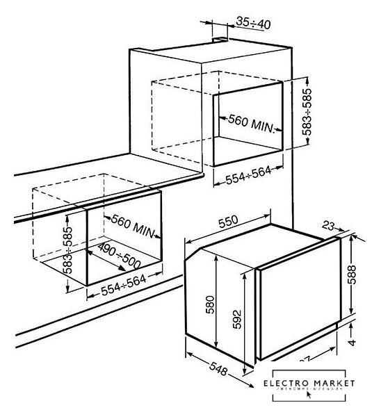 электрический с конвекцией, объем 70 л, 13 режимов, очистка паровая, 3 стекла в дверце, направляющие проволочные