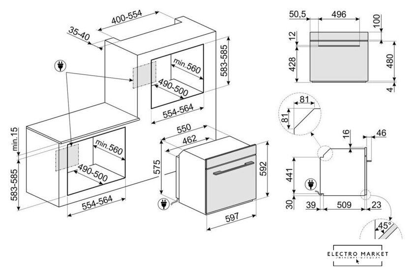 | Режимы работы | нижний нагрев, большой гриль, вентиляционный нагрев, гриль + конвекция, нижний нагрев + конвекция, размораживание, поддержание температуры (подогрев), предварительный разогрев духовки, подготовка теста |
