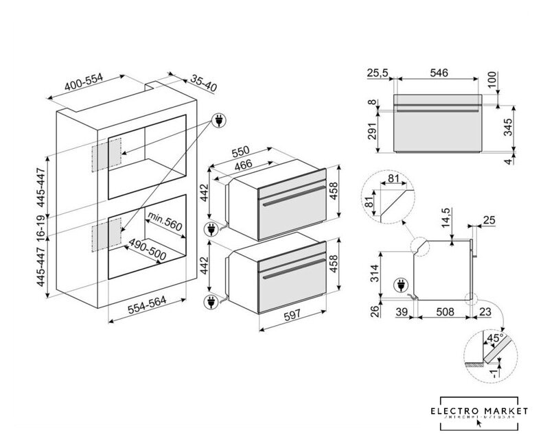 электрический с конвекцией, микроволны, объем 45 л, 19 режимов, очистка пиролитическая + паровая, направляющие проволочные + телескопические (1 уровень)