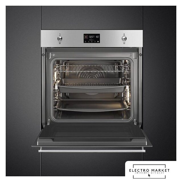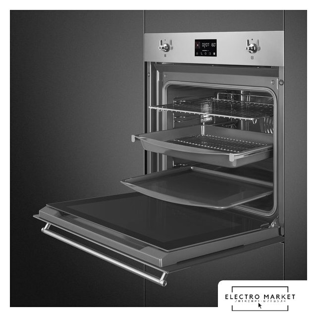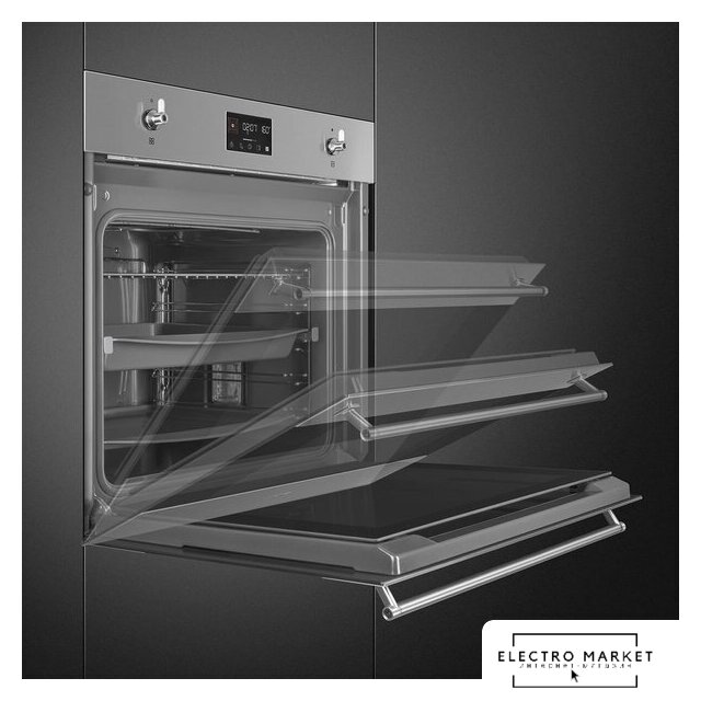 электрический с конвекцией, объем 70 л, ретродизайн, 9 режимов, очистка паровая, 3 стекла в дверце, направляющие проволочные