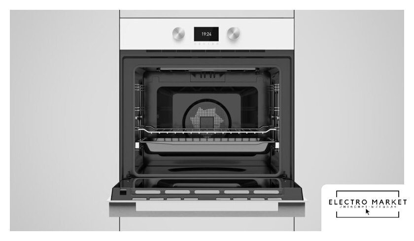 электрический с конвекцией, объем 65 л, 9 режимов, очистка паровая, 3 стекла в дверце, направляющие проволочные