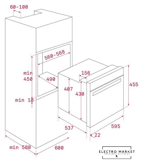 электрический с конвекцией, объем 78 л, 18 режимов, очистка паровая, направляющие проволочные + телескопические (1 уровень)